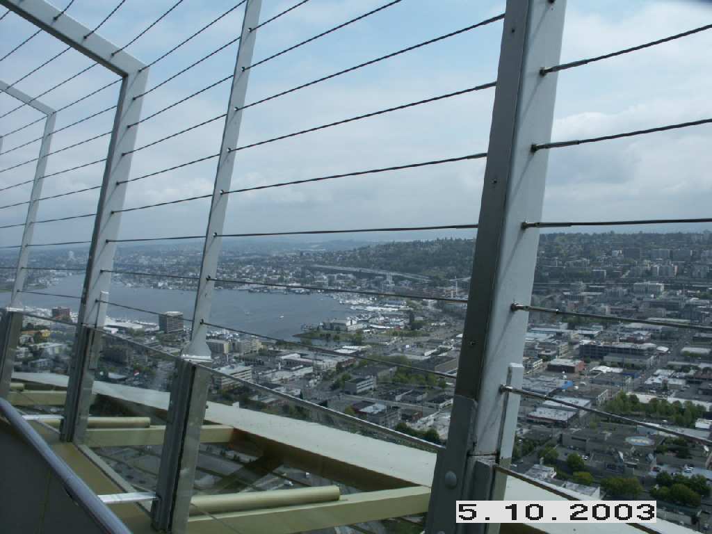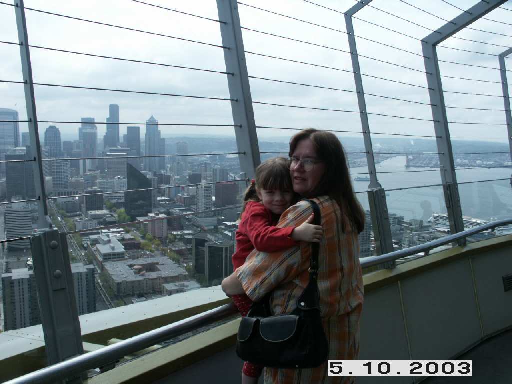 Colleen and Samantha near the edge at the Space Needle.
